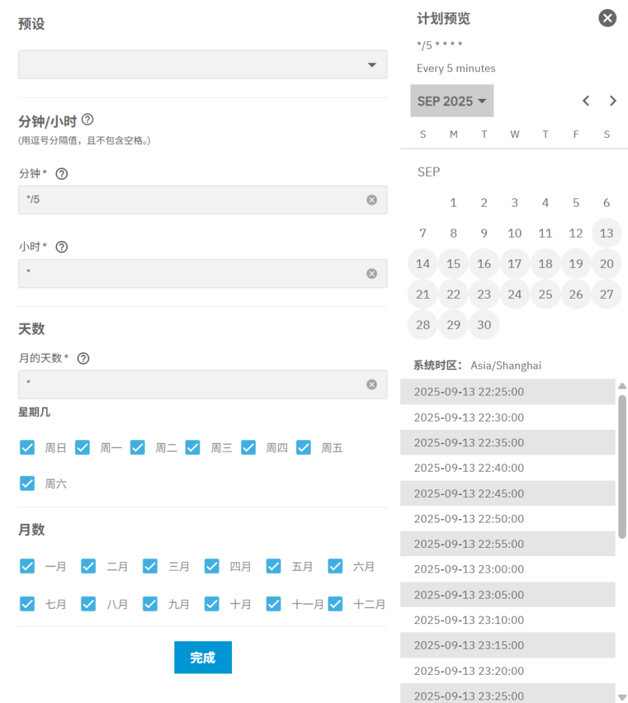 这个命令通过root的权限进行运行,其运行时间按如下图进行设置,方可设定为5分钟运行一次: